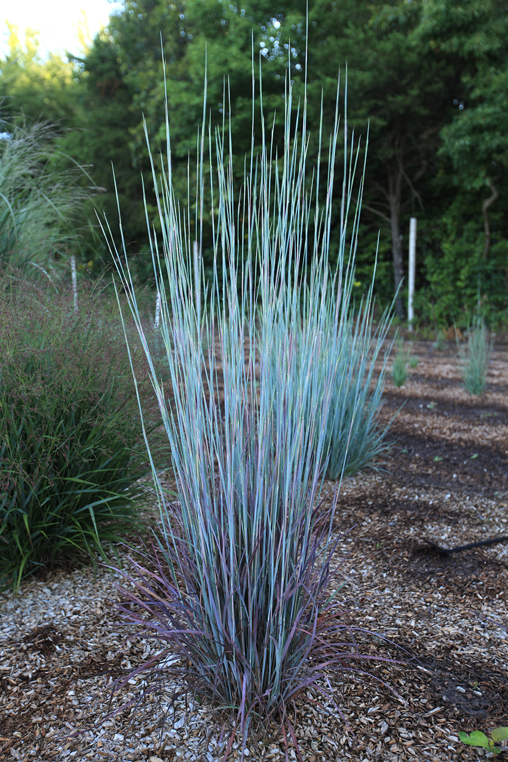 Little BluestemSo distinctive that it’s easy to pick out among dozens of Schizachyrium cultivars in breeder Hortech, Inc.’s trials. Uniquely narrow habit; forms a strictly upright clump of sky blue, finely textured foliage. Beginning in late summer, the entire clump flushes ruby red and purple from the base. An architecturally interesting native cultivar for hedges or accents.
